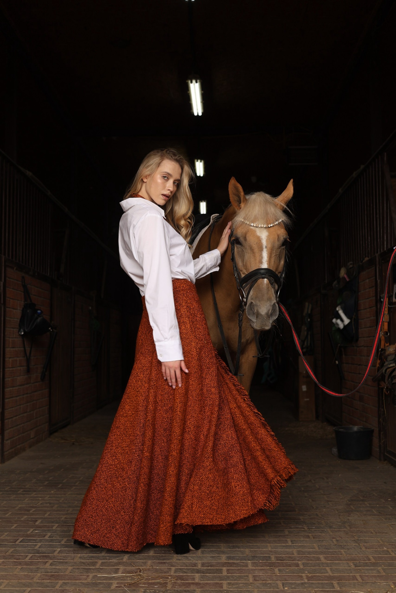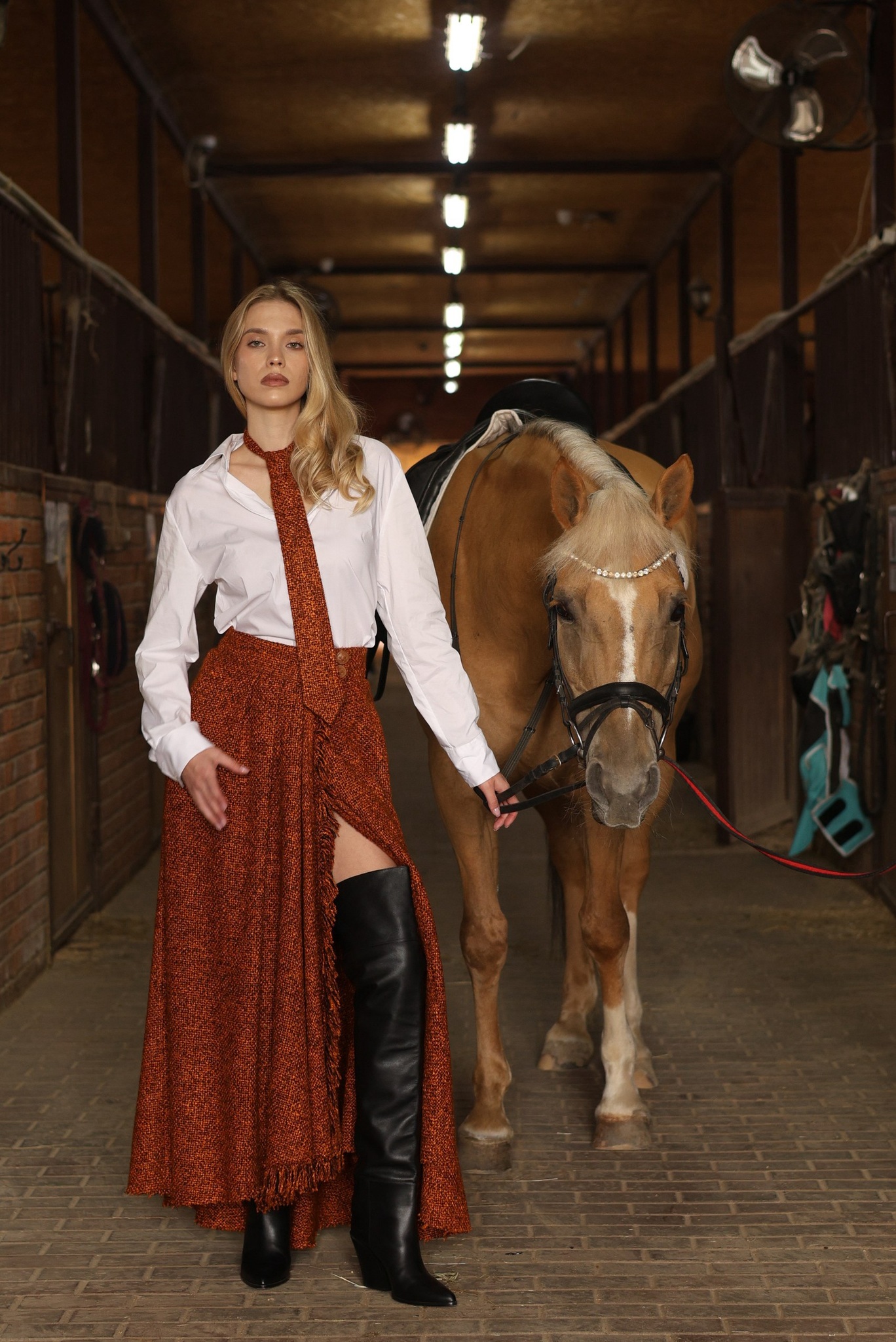 С шелковым топом, каблуками-шпильками и клатчем для выхода в свет. С воздушной блузкой и туфлями на лодочке.