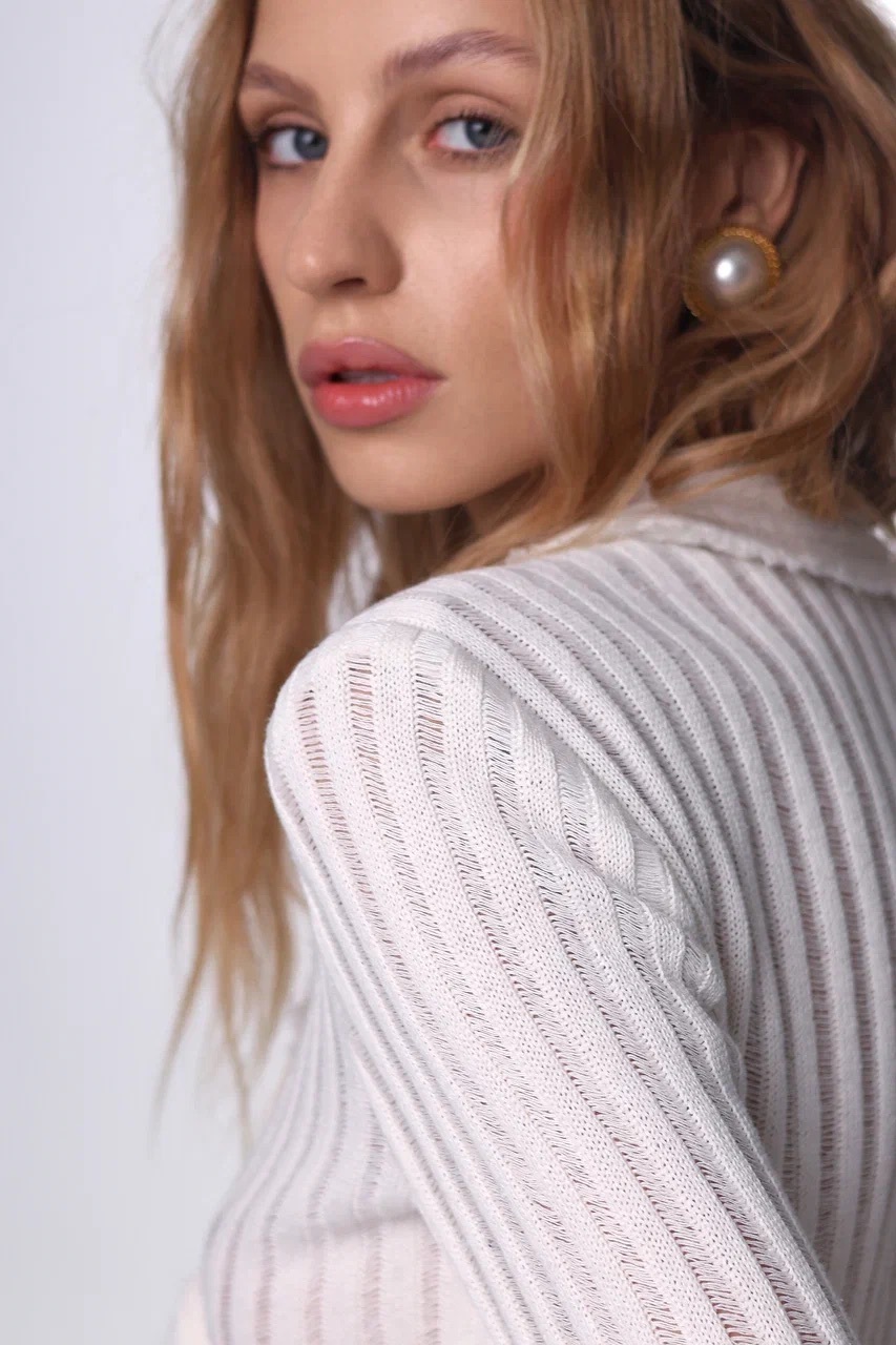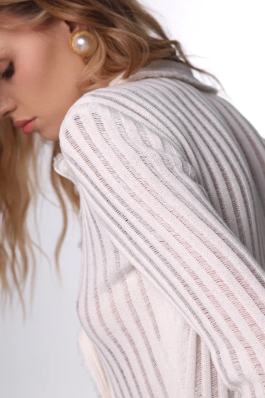 Удлиненные рукава длины макси, полупрозрачная ткань, все это про новый кардиган на пуговицах