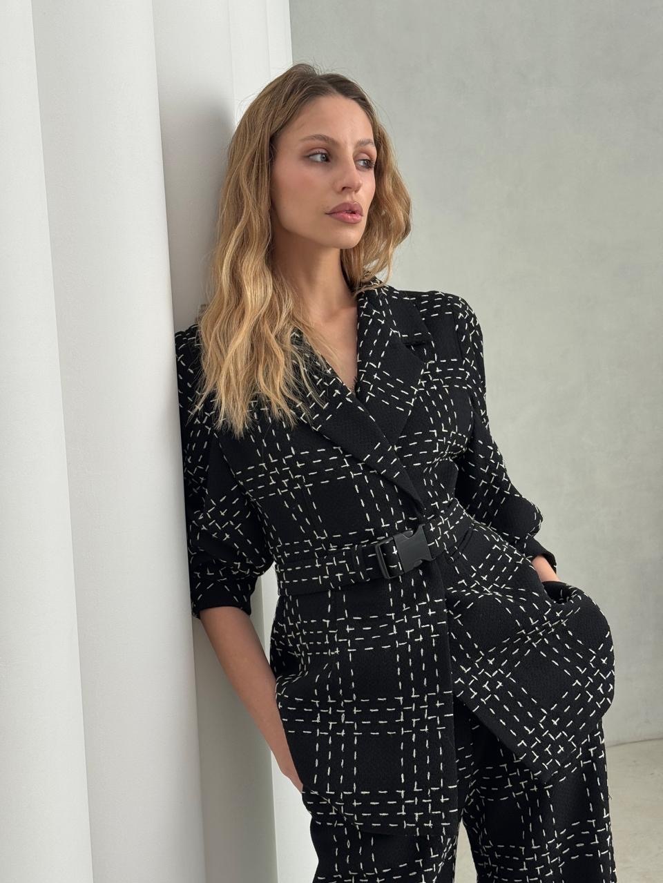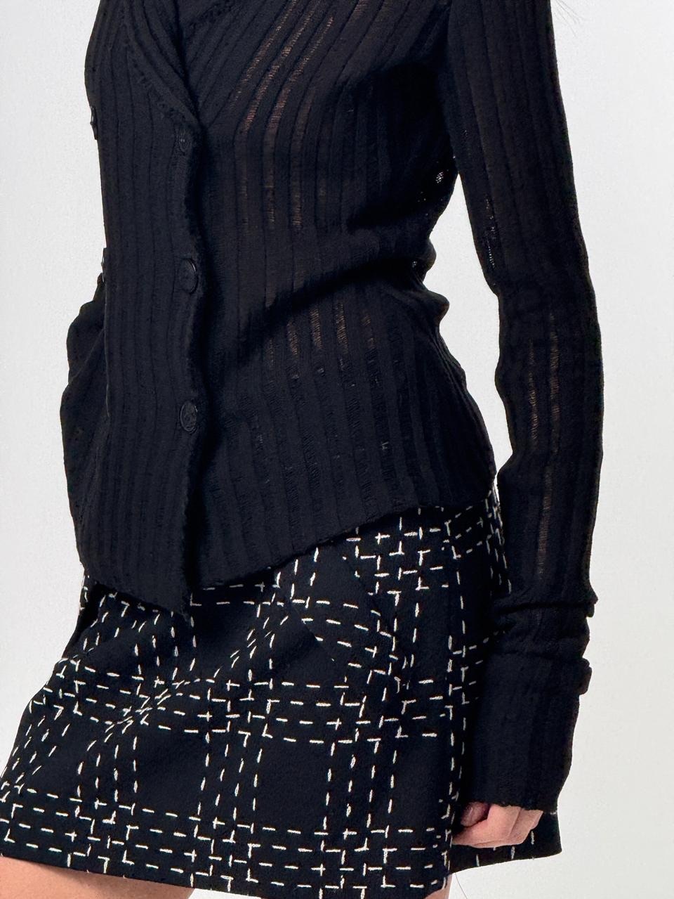 Юбка мини из твидовой ткани в клетку. Ремень с фустером