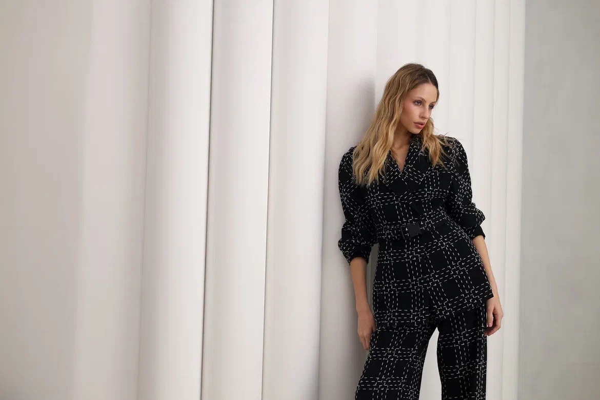 Обхват бедер 96-98 см, Обхват талии 70-72 см ,рост модели 175 см, размер 42 (российский).